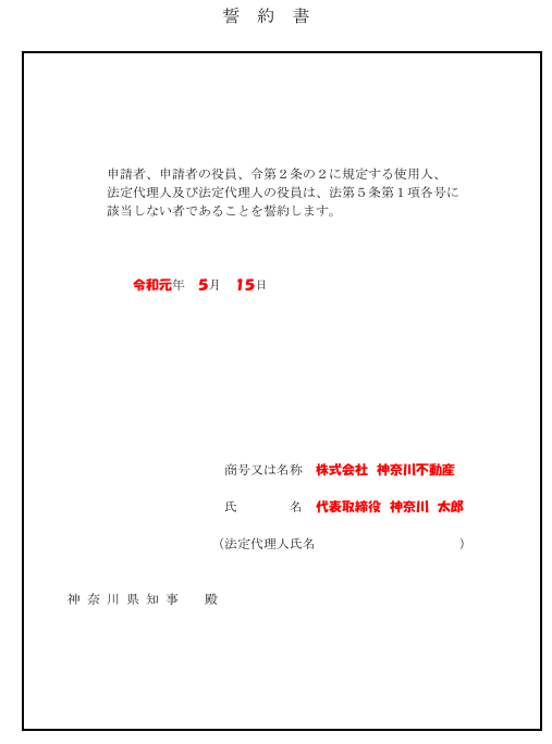 宅地建物取引業(宅建業)を始めるためには、知事や国土交通大臣の免許が必要です。その申請書類の中に必ず含まれているのが誓約書です。