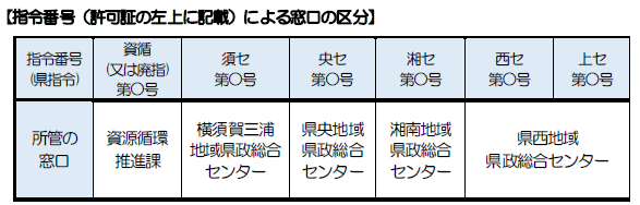 許可証の左上に記載されている指令番号に応じて、現在の所管窓口が決められています。