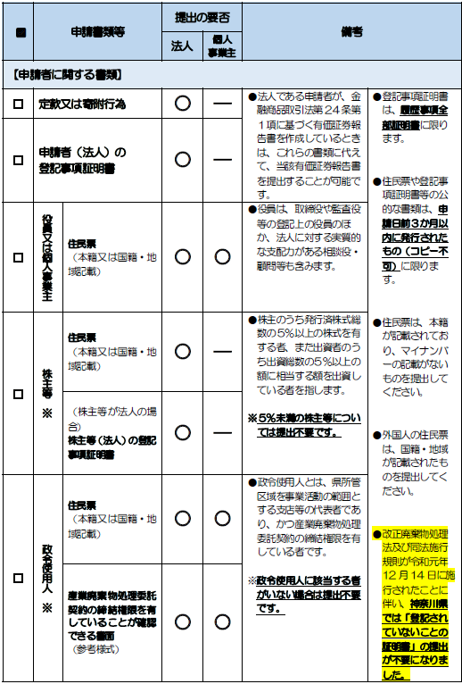 ①提出部数と添付書類一覧