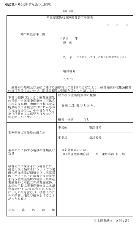 今回は、神奈川県で産廃収集運搬業(積替保管を除く)の新規許可申請を行う際の申請書の書き方について、行政書士の視点から解説します。