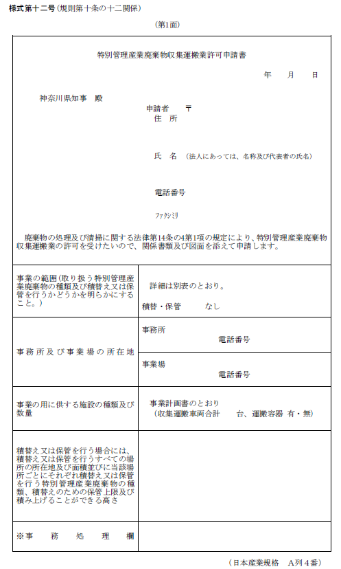 ※神奈川県 産業廃棄物・特別管理産業廃棄物収集運搬業 許可申請等の手引き 抜粋