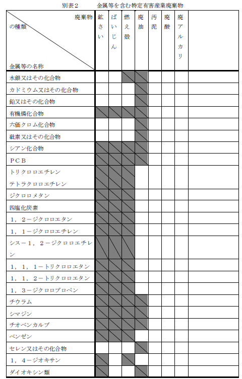 PCBは「別表1」に記載すると覚えてください。別表1に書くから、別表2(種類ごとの具体的な取扱い等)には混ぜてはいけない、という棲み分けがなされています。