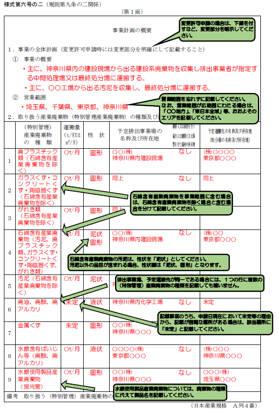 特に審査のうえで肝となるのが事業計画書(第一面)です。今回は、特管産廃の許可申請を控える事業者様や、実務に携わる方に向けて、作成時に見落としがちな重要なポイントを解説します。