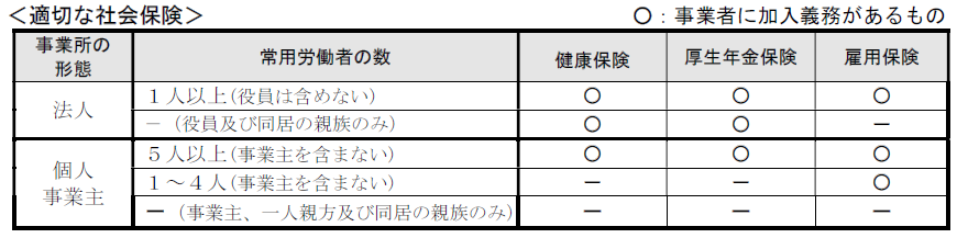 上記のような役職ではない一般の従業員を雇用した場合でも、建設業許可の適正な履行を担保する観点から、間接的に影響する重要な手続きがあります。それは、社会保険・労働保険の加入状況に関するものです。